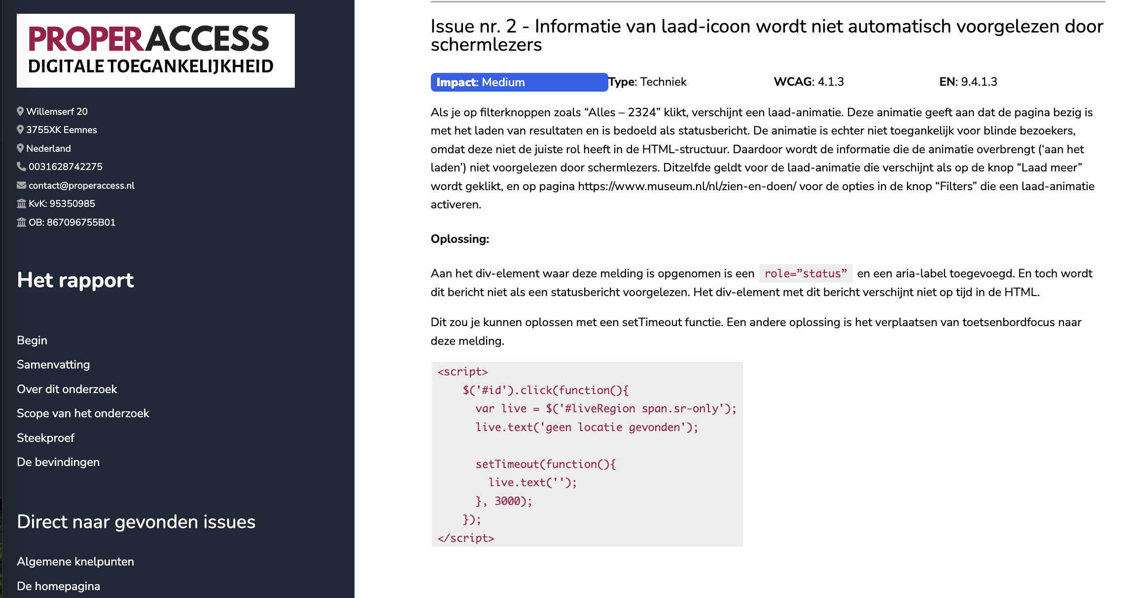 Wij voeren een WCAG‑audit uit die precies laat zien waar jouw website of app nog niet voldoet aan de EAA en WCAG 2.2 AA‑criteria. Je krijgt een duidelijk rapport met een prioriteitenplan, zodat je snel de grootste juridische risico’s wegneemt.