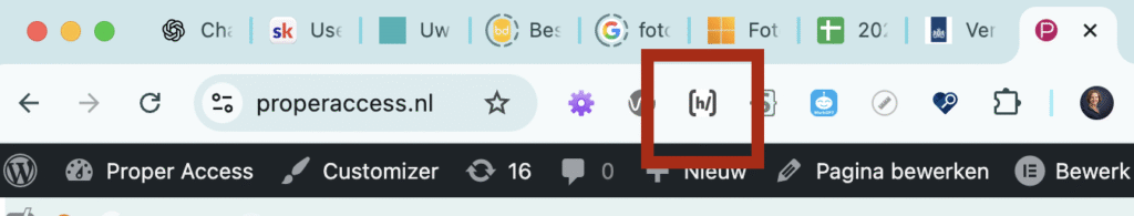 Klik rechtsboven in je browser op het HeadingsMap-icoon (h/) in de werkbalk. Het paneel opent direct.