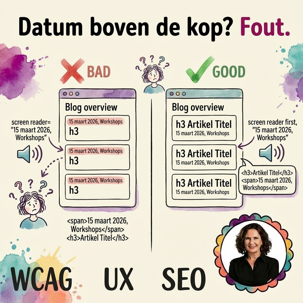 Metadata boven de kop van een artikel — WCAG 1.3.2 Betekenisvolle volgorde (post 1/9)
