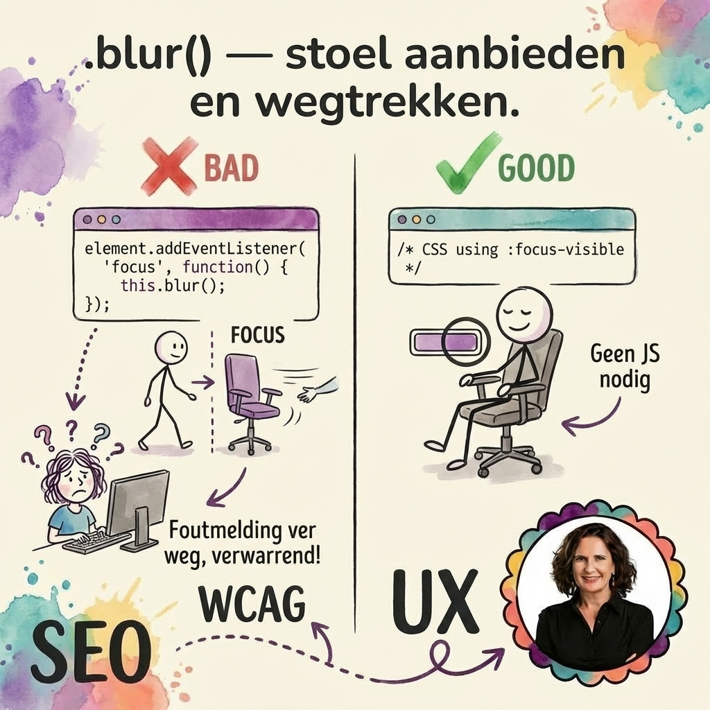 JavaScript dat de focus actief verwijdert — WCAG 2.4.7 Focus zichtbaar (post 5/7)